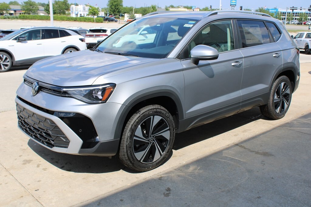 Silver 2025 Volkswagen Taos 4D Sport Utility 1.5T SE 1.5L I4 Turbocharged DOHC 16V LEV3-SULEV30 174hp 25/33 City/Highway MPG 8-Speed Automatic with Tiptronic AWD