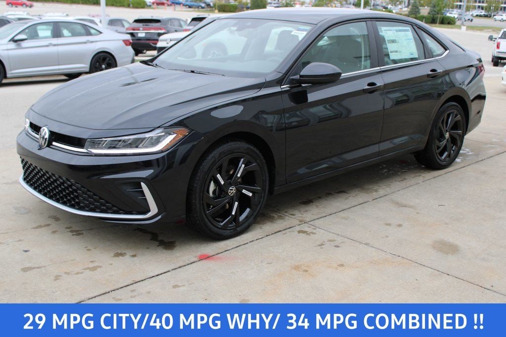 Black 2026 Volkswagen Jetta 4D Sedan 1.5T SE 1.5L I-4 DI DOHC Turbocharged 29/40 City/Highway MPG 8-Speed Automatic with Tiptronic FWD