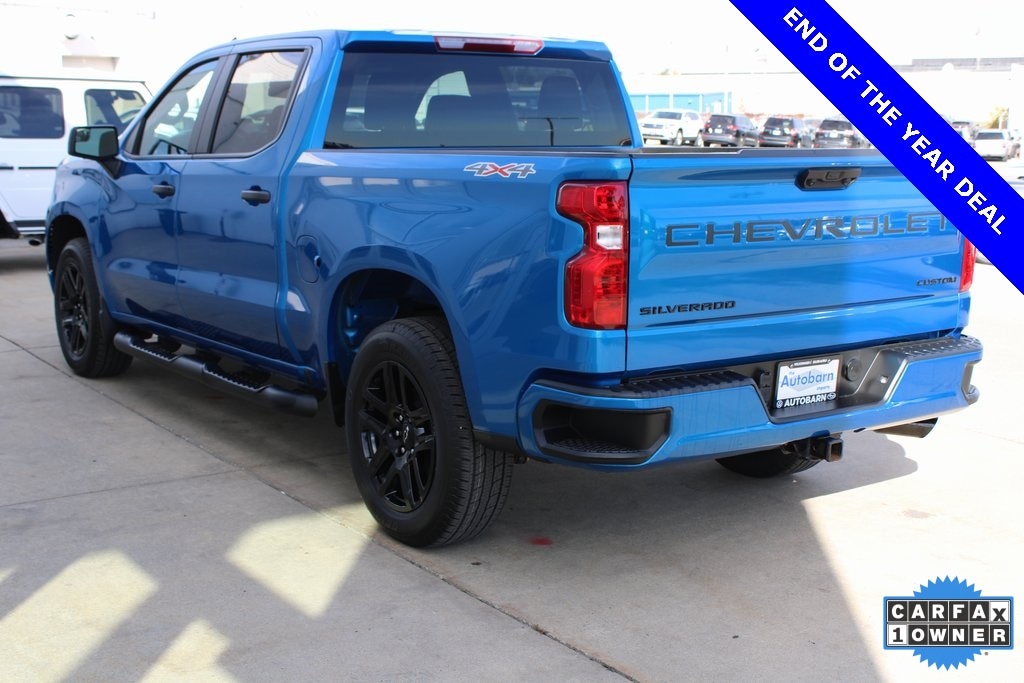 CARFAX One-Owner. Glacier Blue Metallic Chevrolet 2023 Silverado 1500 4D Crew Cab Custom 2.7L Turbo 18/21 City/Highway MPG 8-Speed Automatic 4WD